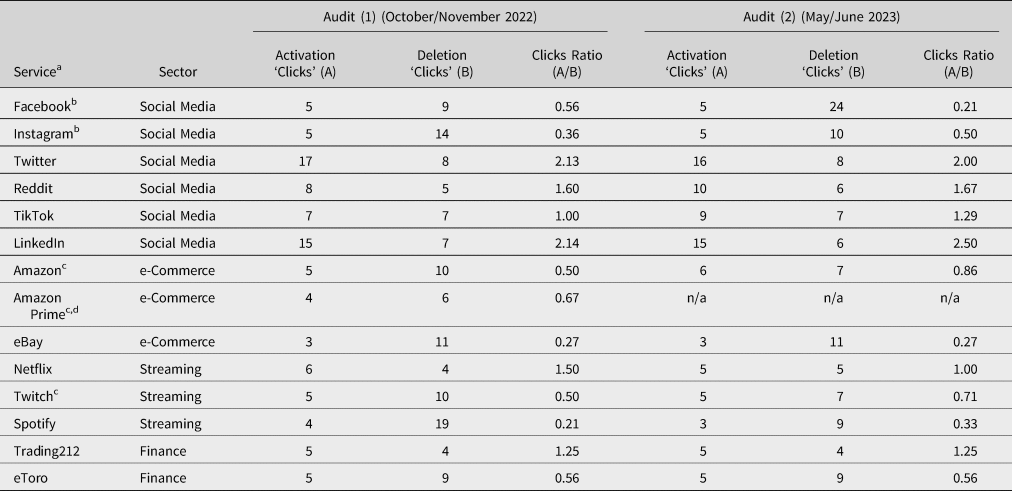 Dark patterns are user interface design elements which harm users but benefit vendors. These harms have led to growing interest from several stakeholders, including policymakers. We develop a high-level analytical framework – the dark patterns auditing framework (DPAF) – to support policymaker efforts concerning dark patterns. There are growing links between dark patterns and the behavioural science concept of sludge. We examine both literatures, noting several worthwhile similarities and important conceptual differences. Using two ‘sludge audits,’ and the DPAF, we examine 14 large online services to provide a high-level review of the user experience of these services. Our approach allows policymakers to identify areas of the user ‘journey’ (dark paths) where sludge/dark patterns persist. For regulators with constrained resources, such an approach more be advantageous when planning more granular analyses. Our approach also reveals several important limitations, notably, within some of the tools for sludge auditing which we develop, such as the ‘equal clicks principle.’ We discuss these limitations and directions for future research.